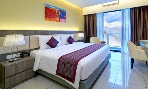 Ideal for families travelling together, comes with a separate living and sleeping spaces, work, and a dining area.